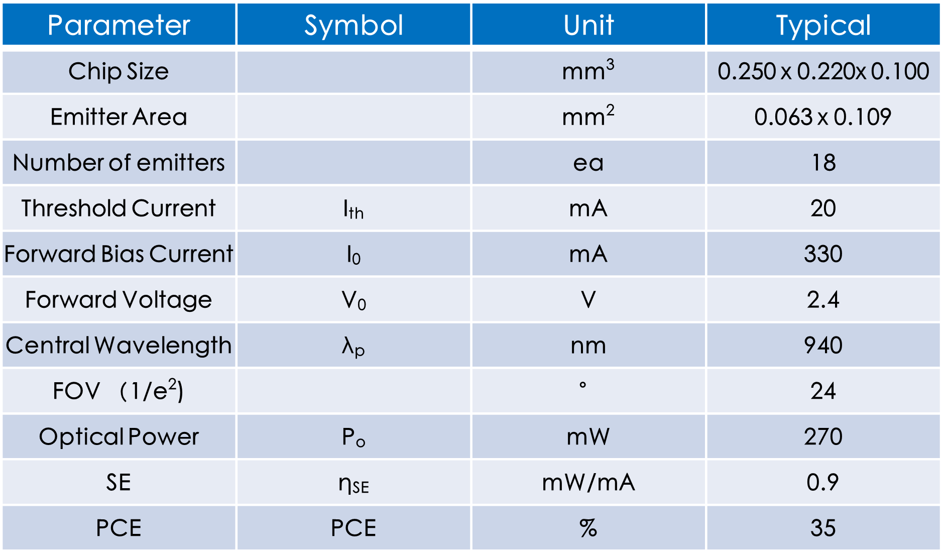 多點940nm VCSEL 直流功率:270mW 發(fā)散角:24°