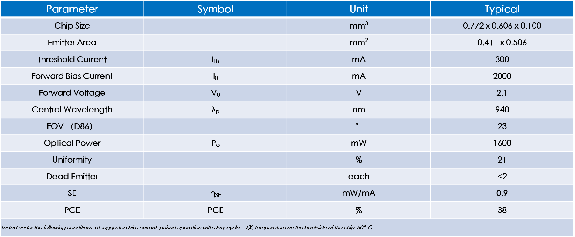 Irregular array 940nm VCSEL Power: 1.6W PCE:38% Development of customizable pattern
