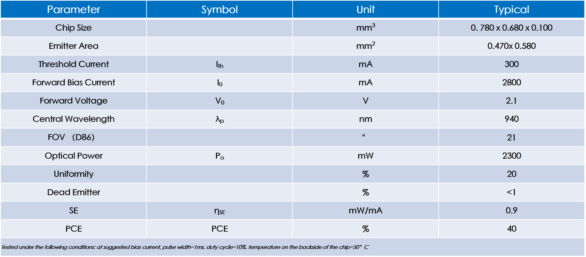 Regular array 940nm VCSEL Power: 2.3W PCE:40%