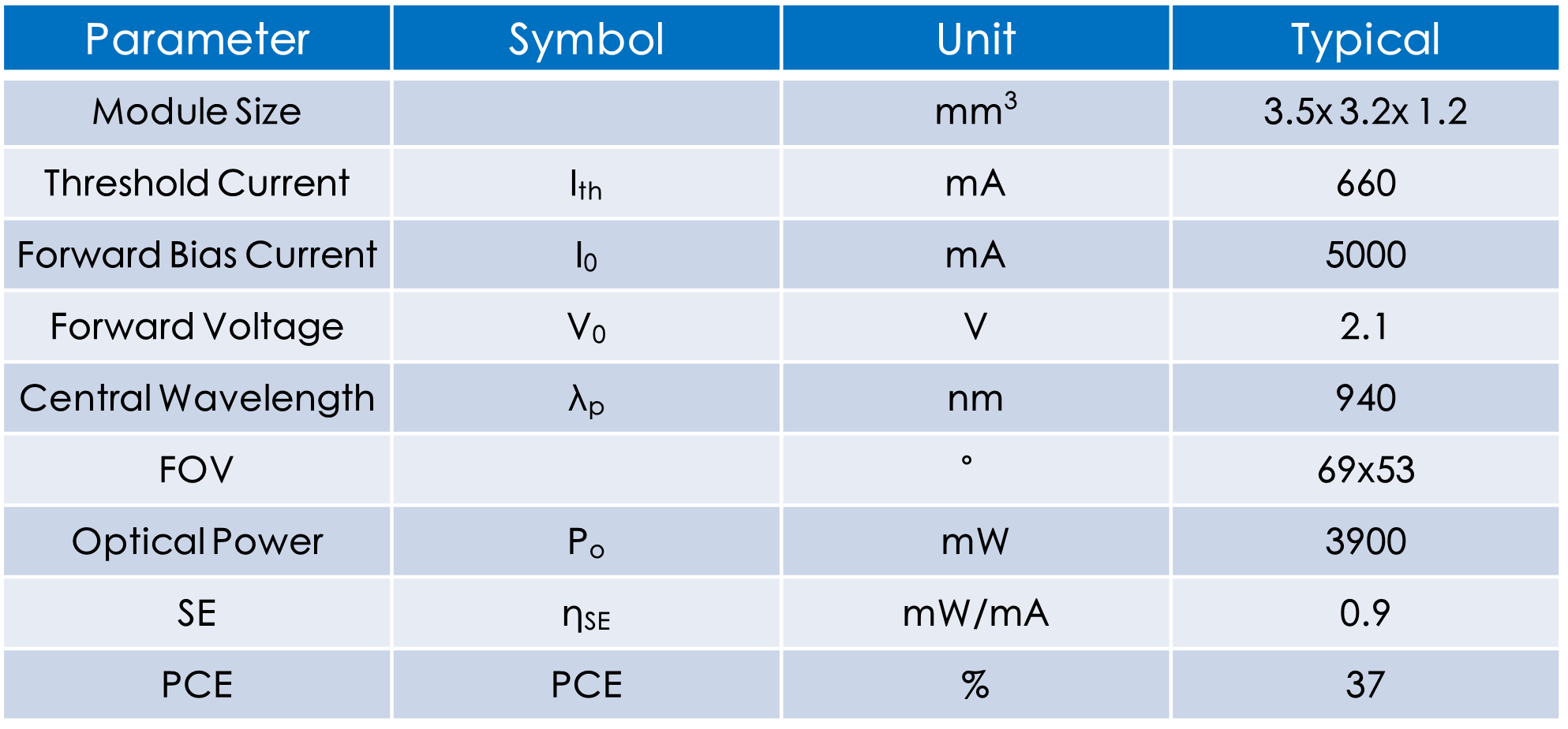 940nm TOF投射燈,4W 高亮度、高可靠性 視場角/模組尺寸可按需定制