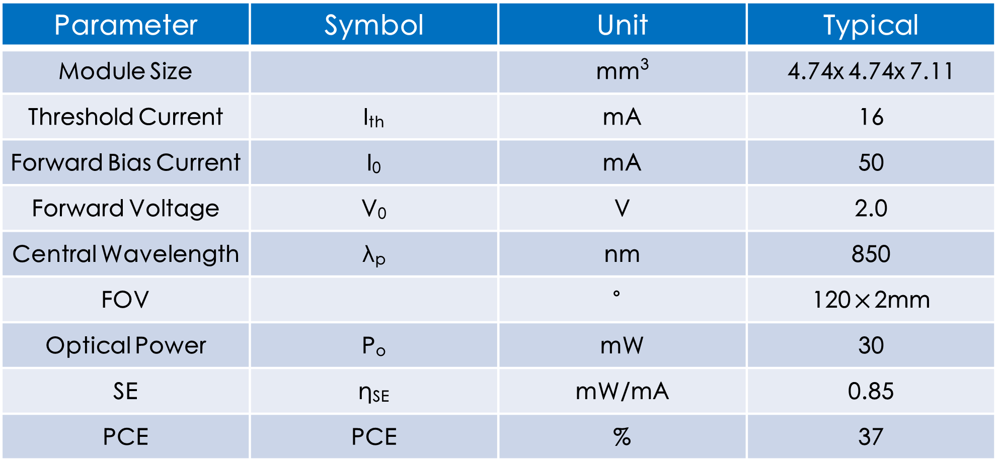 850nm 結構光投射燈,30mW 高亮度、高可靠性