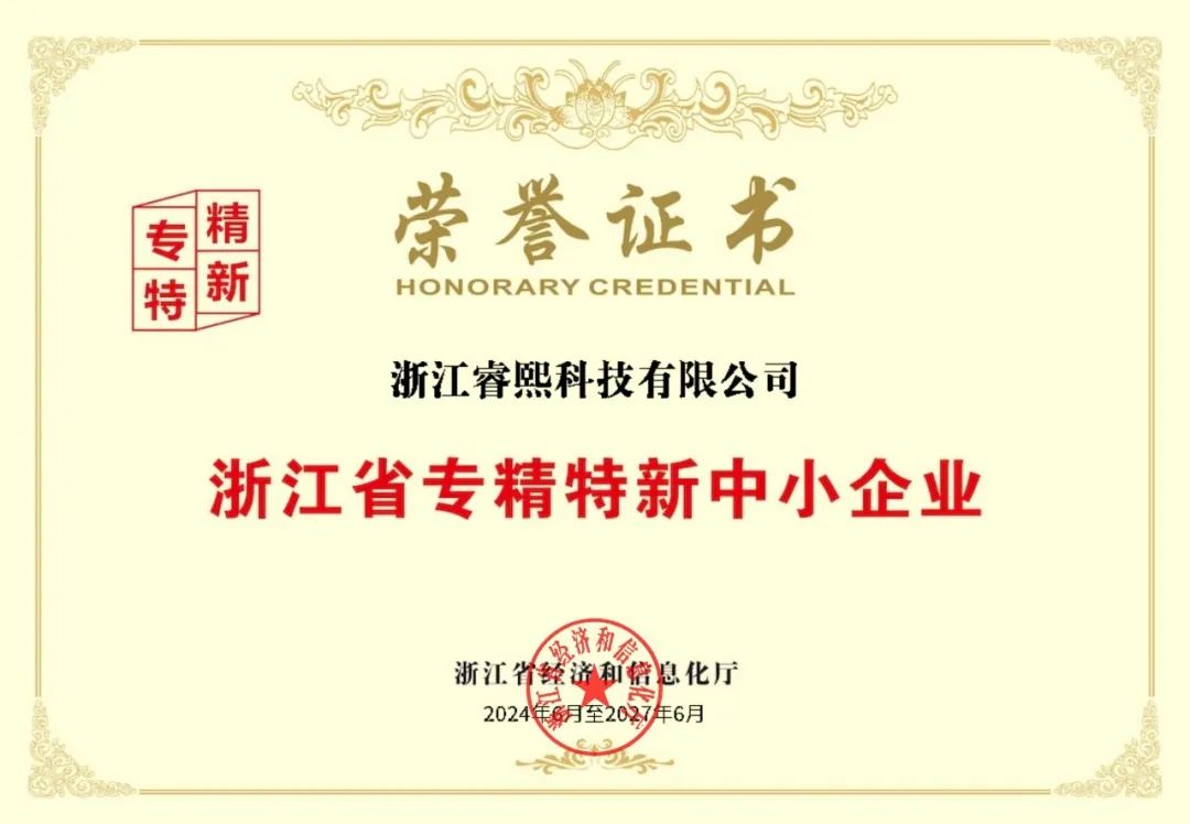 近日,浙江省經(jīng)濟(jì)和信息化廳公布了2024年度首批“專精特新”中小企業(yè)名單,浙江睿熙科技有限公司憑借其在專業(yè)化、精細(xì)化、特色化、新穎化方面的卓越表現(xiàn),獲評2024年首批“浙江省專精特新中小企業(yè)”。